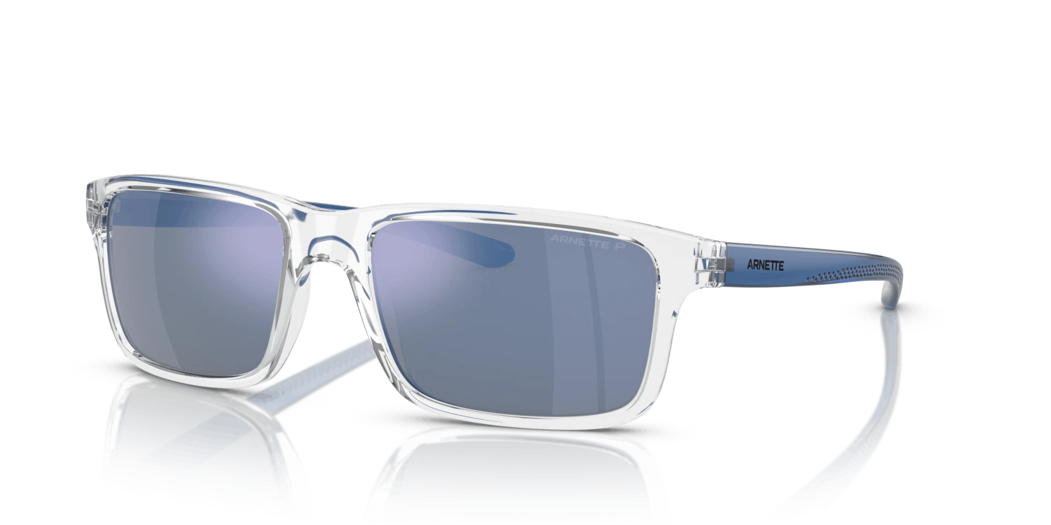 Nieuwe zonnebril nodig? Zoek niet verder! De Arnette Mwamba AN4322 275522 is namelijk onmisbaar in jouw collectie. Dit prachtige heren model is transparant en is gemaakt van kunststof. De blauwe glazen filteren scherp licht en verminderen contrast. Deze zonnebril heeft gepolariseerde glazen met een spiegelcoating. Gepolariseerde glazen verminderen de lichtintensiteit en absorberen een deel van de lichtschitteringen. Gespiegelde glazen reflecteren meer licht en zorgen ervoor dat niemand jouw ogen ziet. De Arnette AN4322 275522 heeft een rechthoekig montuur. Dit past goed bij een ovale of ronde gezichtsvorm. Dit montuur valt klein.