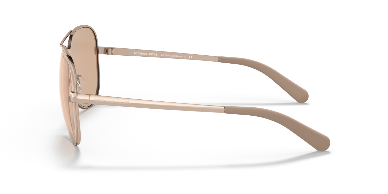 Nieuwe zonnebril nodig? Zoek niet verder! De Michael Kors 5004 1017R1 is namelijk onmisbaar in jouw collectie. Dit prachtige dames model is brons en is gemaakt van metaal. De bruine zonnebrilglazen zorgen voor een verhoogd contrast en blokkeren blauw licht. Deze zonnebril heeft gespiegelde glazen. Deze glazen reflecteren meer licht en zorgen ervoor dat niemand jouw ogen ziet. Gespiegelde zonnebrillen zijn vooral gewild onder sporters. De Michael Kors 5004 1017R1 is een piloten zonnebril. Dit past goed bij een ovale gezichtsvorm. Dit montuur valt klein.