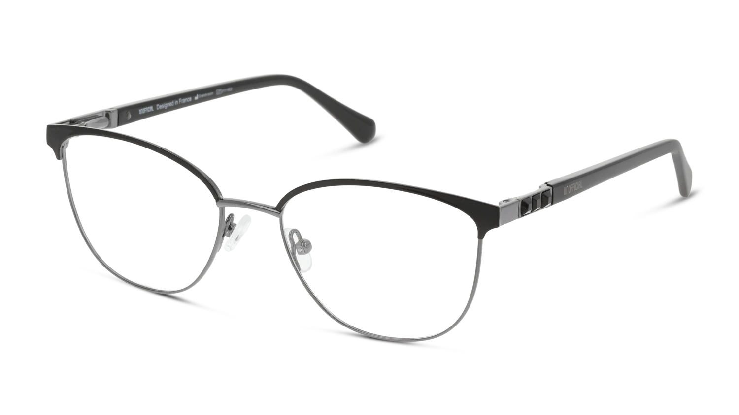 Is het tijd voor een (nieuwe) bril? Misschien is dit wel het montuur dat je zoekt! Deze Unofficial bril is ontworpen voor dames. Hij is zwart met grijs en gemaakt van metaal. De Unofficial UNOF0462 heeft een vierkant montuur. Dit past goed bij een ronde, langwerpige, ovale of hartvormige gezichtsvorm. Voldoet de Unofficial UNOF0462 aan jouw wensen en ligt jouw sterkte tussen -5 en +5? Bestel ‘m dan direct online! Is je sterkte hoger of wil je een multifocale bril? Kom dan langs in één van onze winkels. We staan voor je klaar.